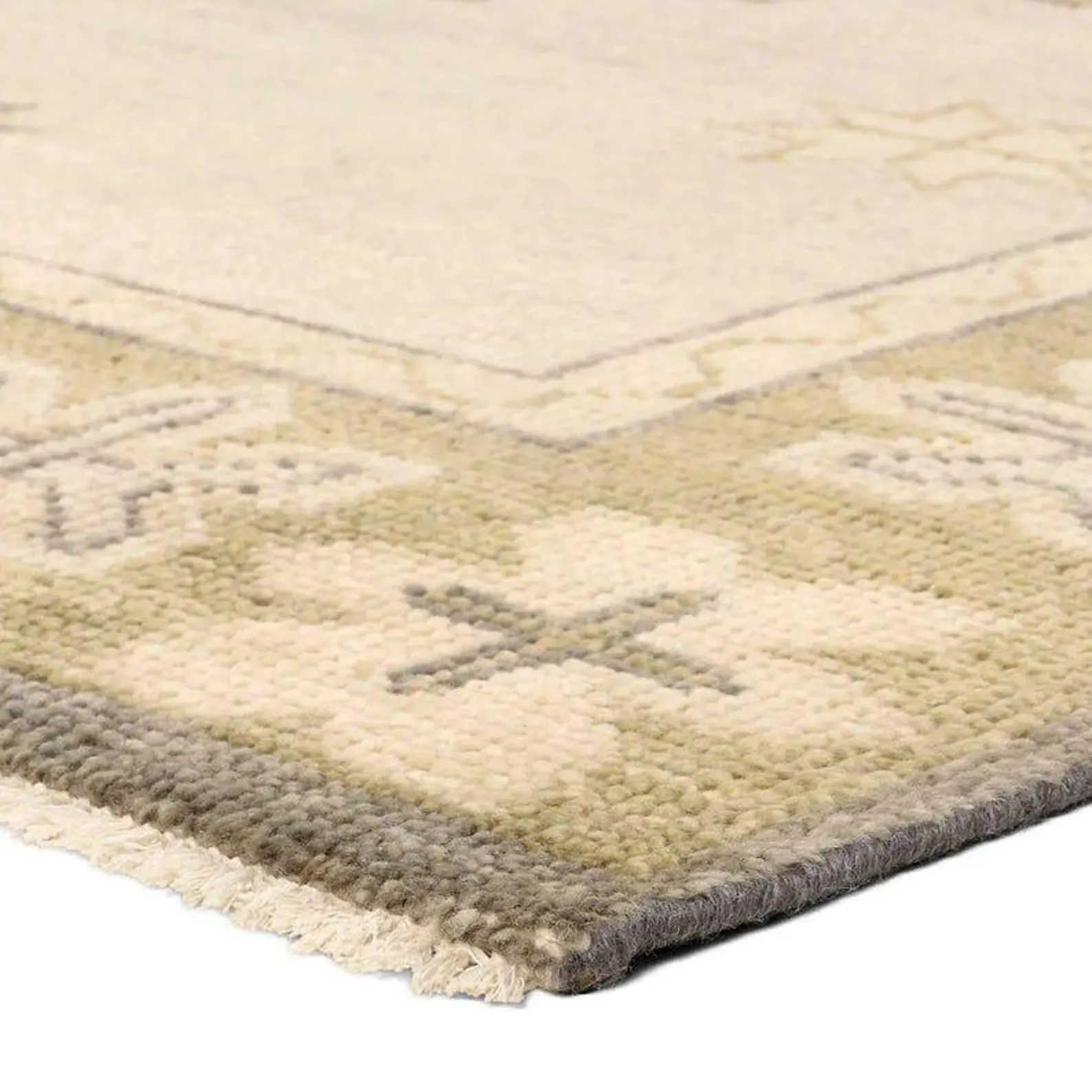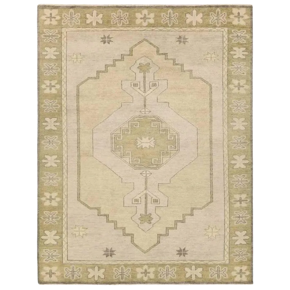 Bring calm, elegance, and natural texture into your home with this modern hand knotted wool rug. Designed in soft beige with olive green accents, this rug features a subtle geometric tribal pattern that fits perfectly in modern, minimalist, and Scandinavian interiors.