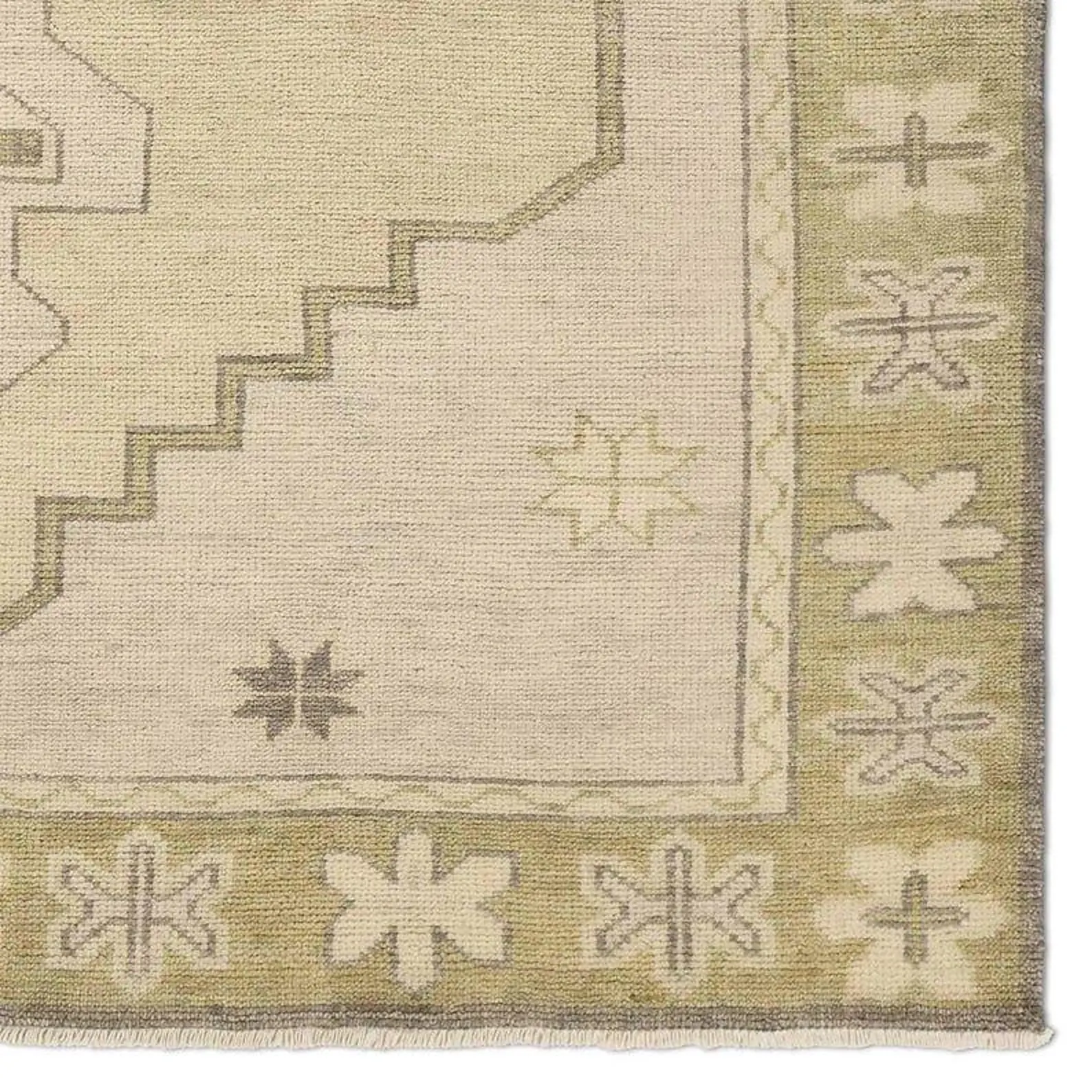 The neutral beige base combined with soft olive green patterns creates a calming and sophisticated look, making it an ideal choice for living rooms, bedrooms, and office spaces. Its subtle geometric tribal design adds character without overpowering your décor, making it easy to style in both modern and classic interiors.